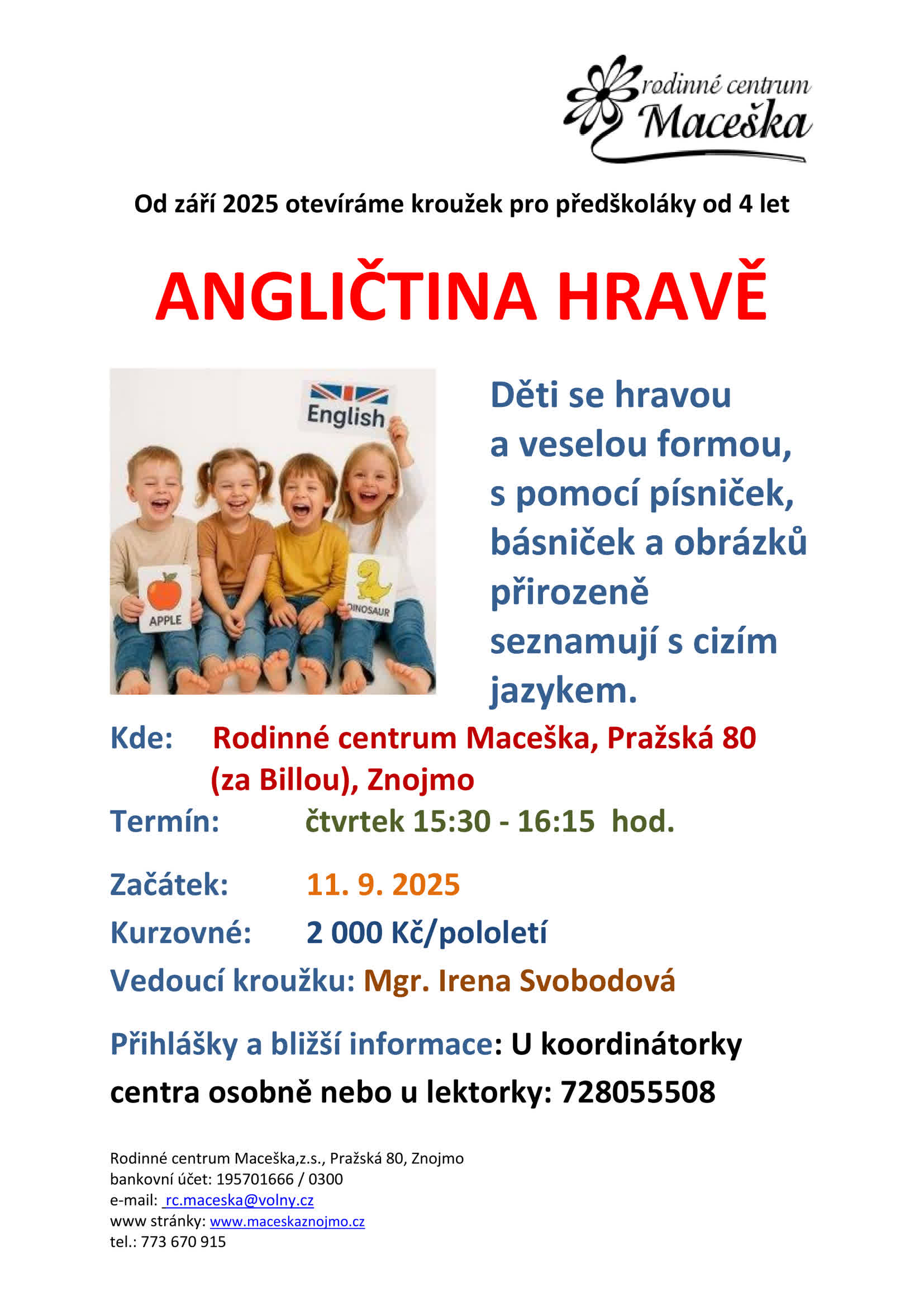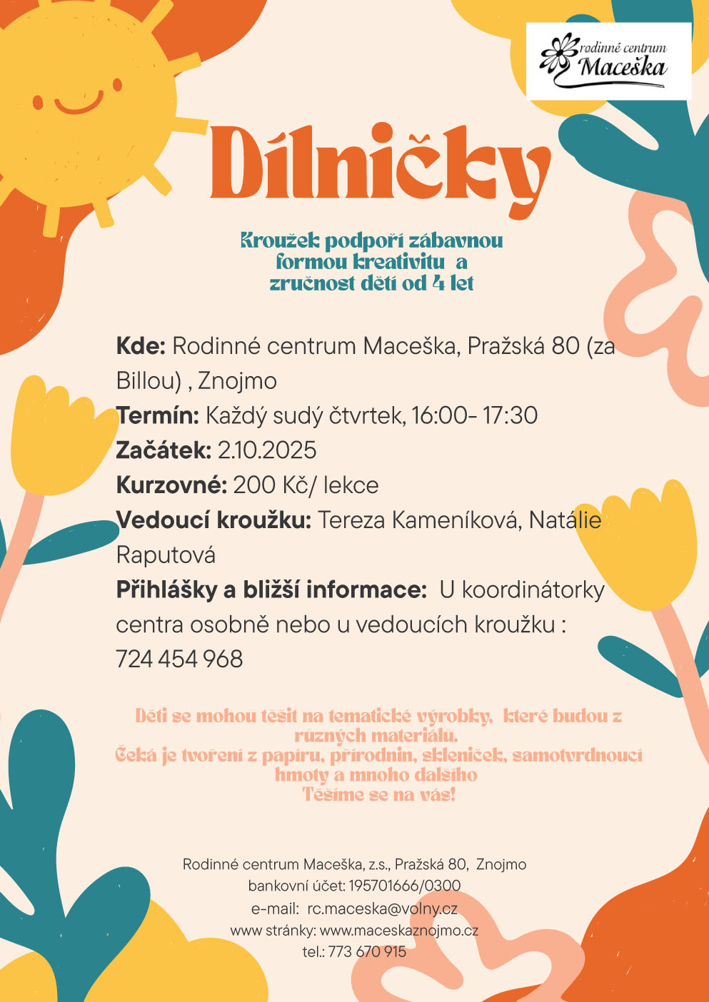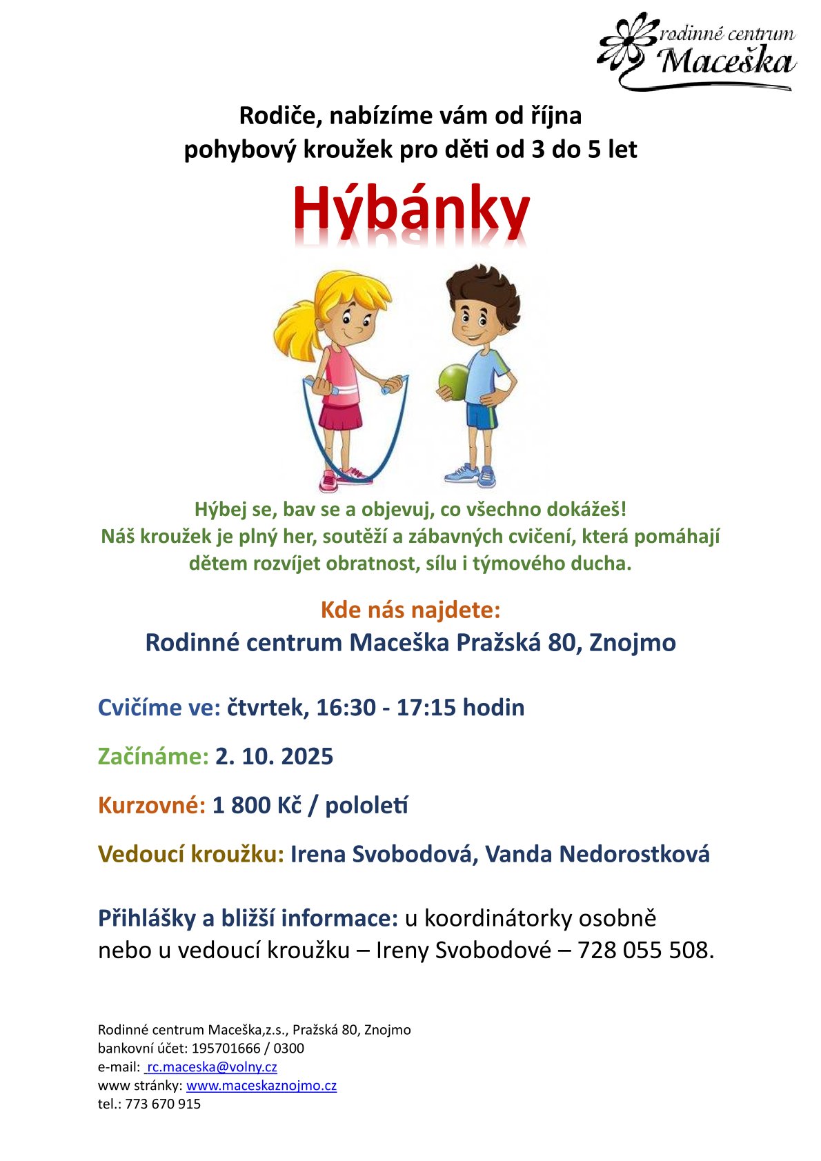 Nabídka kroužků, kurzů a cvičení od září 2025