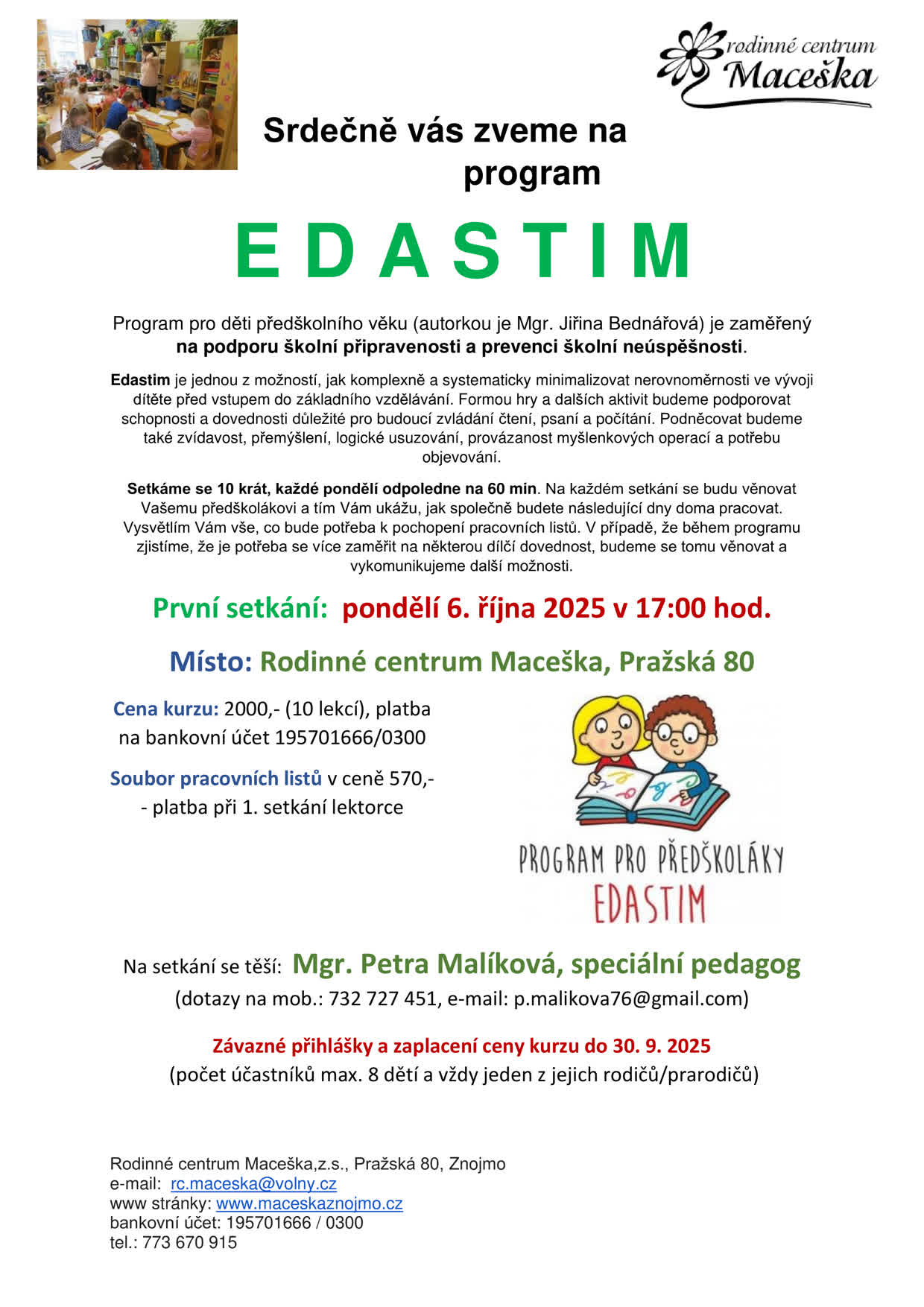 - První setkání: pondělí 6. 10. 2025 v 17:00 hod.