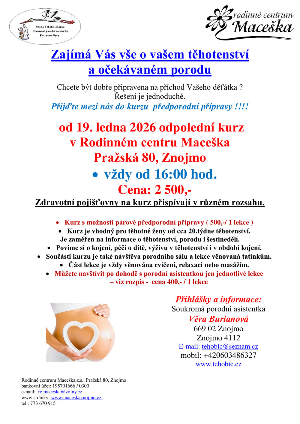 Odpolední předporodní kurz: od 19. 1. – každé pondělí od 16:00 hodin – zobrazit leták [jpg]