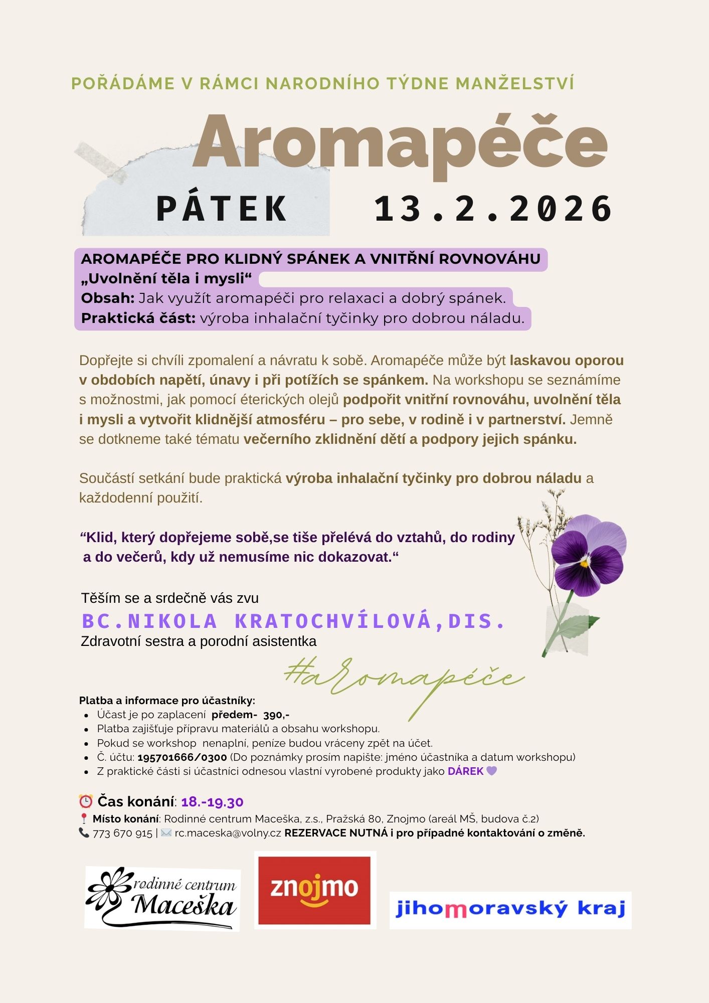 Workshop pořádáme u příležitosti Národního týdne manželství.
