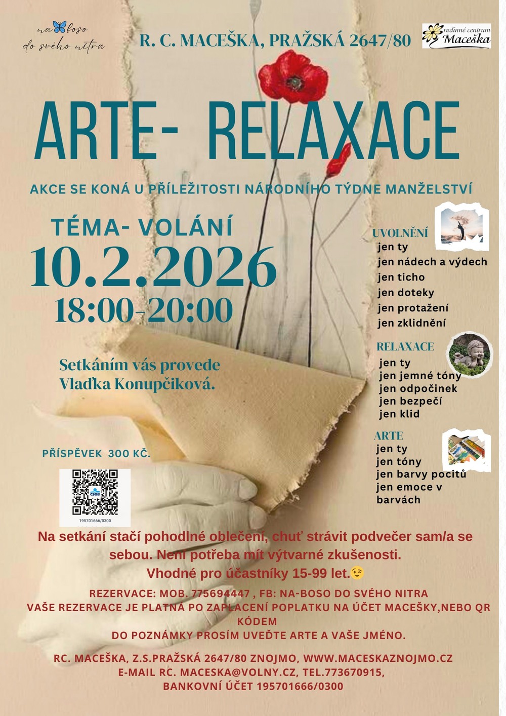 Rezervace je platná po zaplacení poplatku. Kontaktní údaje jsou v letáku.
